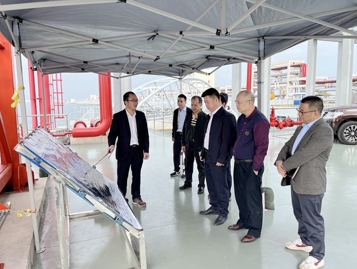 呂森一行深入博賀新港區(qū)項目一線,先后參觀了茂名港博賀新港區(qū)5萬噸級化工碼頭、10萬噸級成品油碼頭、化工倉儲庫區(qū)、茂名港務(wù)中心等重點項目,了解博賀新港區(qū)功能規(guī)劃。
